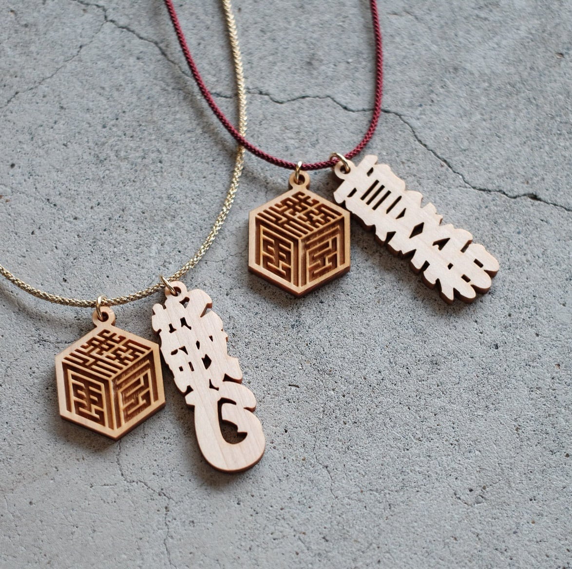 地元の自然豊かな場所で育った天竜檜を使用した、木札のネックレスです。